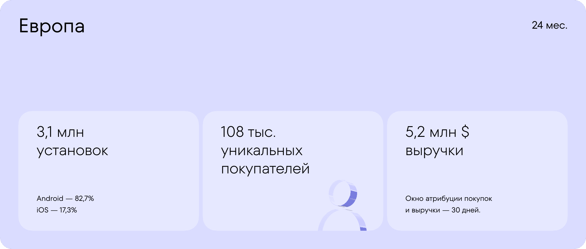 Кампания в Европе помогла привлечь 48% новых пользователей, 45% новых покупателей и при этом 60% выручки.