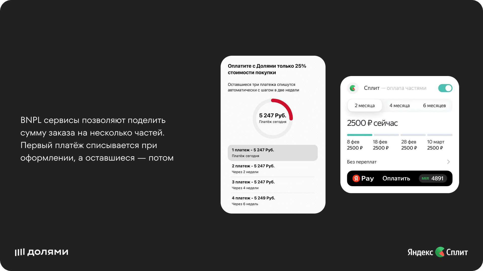 BNPL (Buy Now, Pay Later) — это услуга, позволяющая покупать товары сейчас и платить за них позже, обычно без процентов, если оплата происходит вовремя.
